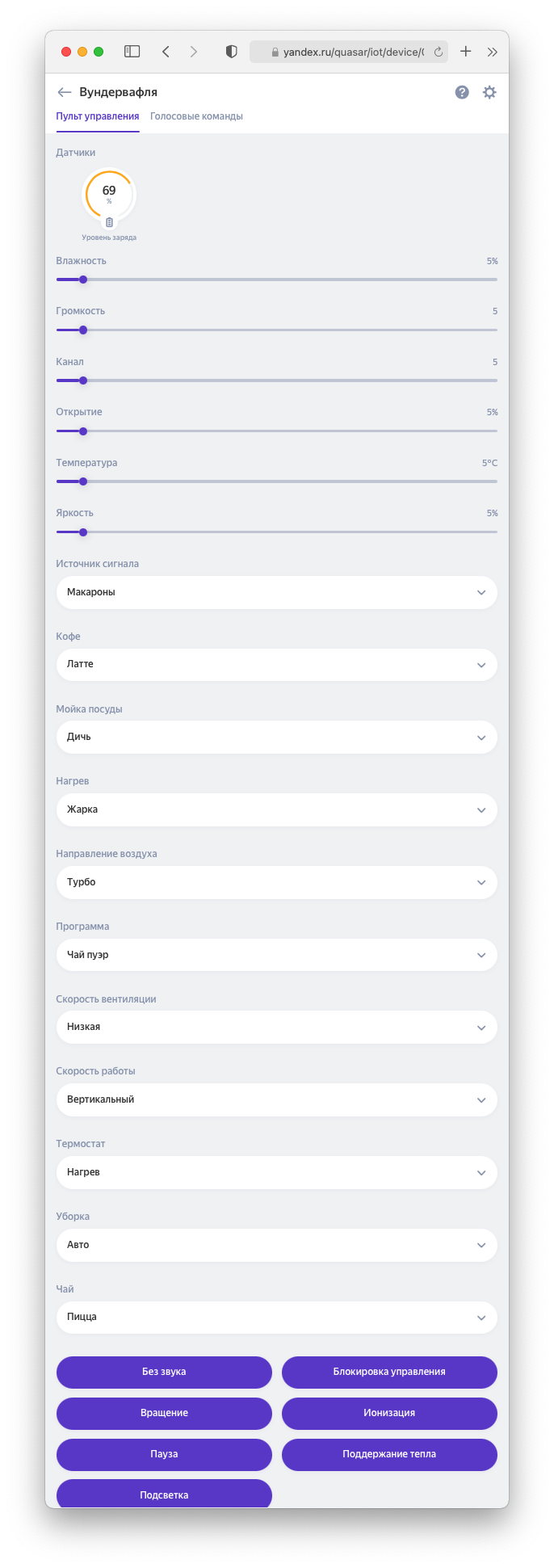 range) - управление параметрами устройства, которые имеют диапазон (яркость лампы, громкость звука, температура нагревателя). Настраиваются через словарьcustom_ranges.