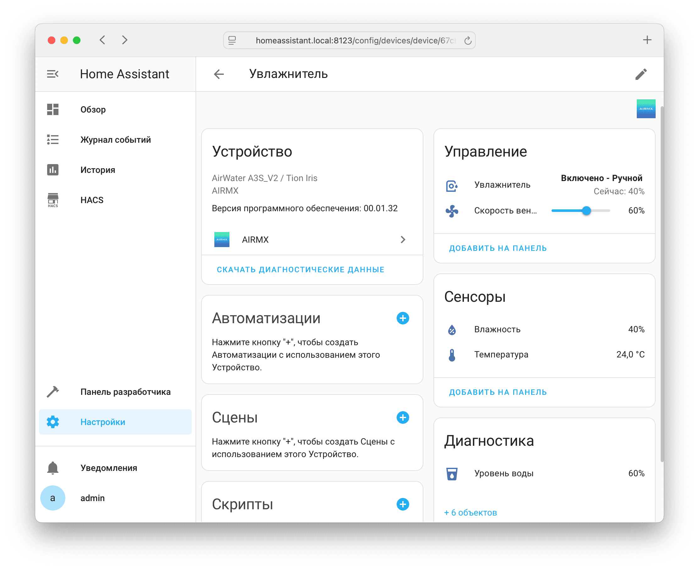sensor.air_humidifier_temperature - Влажность: