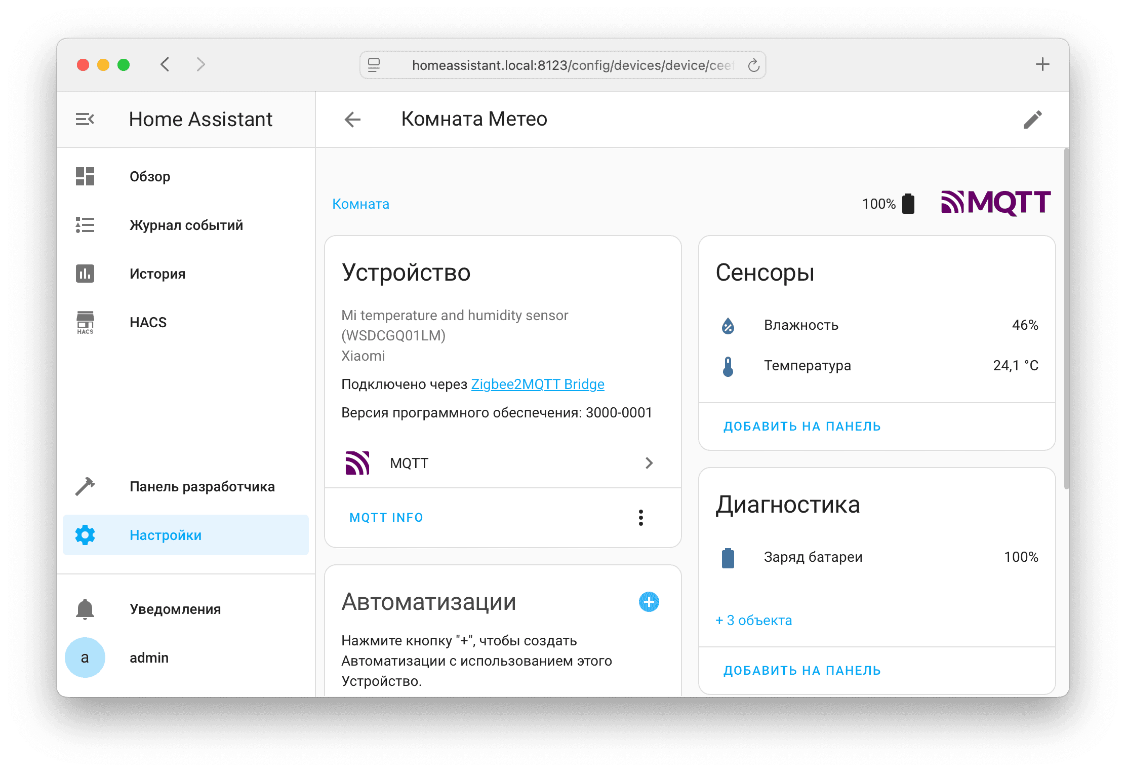 Добавление датчиков к устройству¶