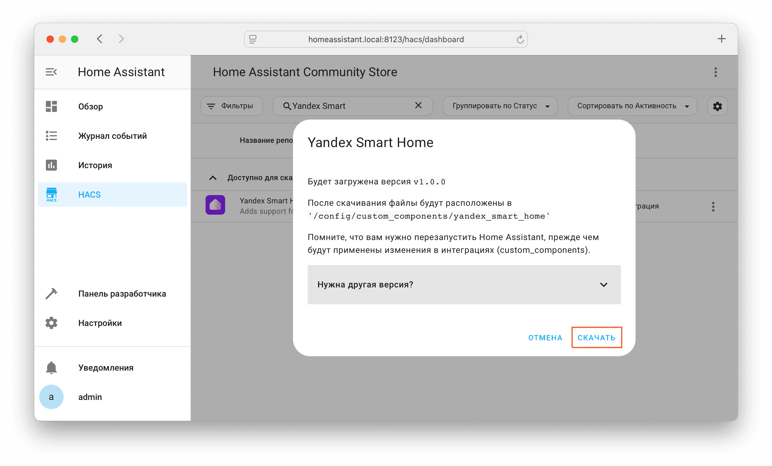 yandex_smart_home.zipиз последнего релиза - Создайте подкаталог